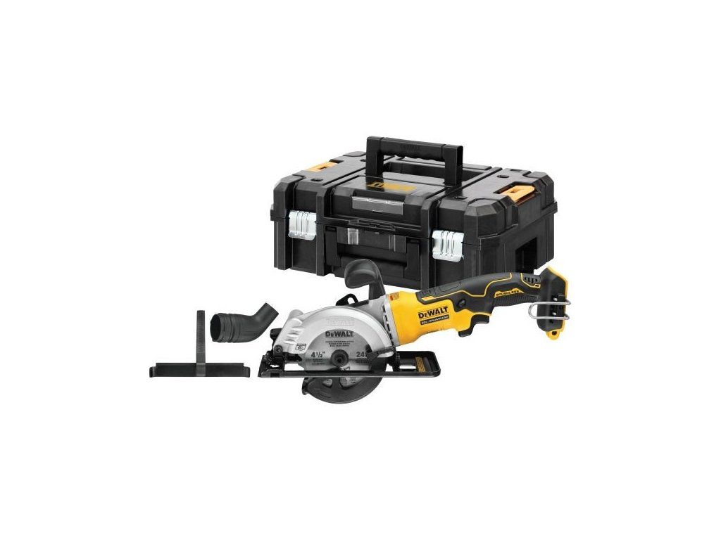 DeWALT DCS571NT-XJ 18V XR bezuhlíková kotoučová pila 115 mm, max. prořez 40 mm, bez akumulátorů a nabíječky, v kufru