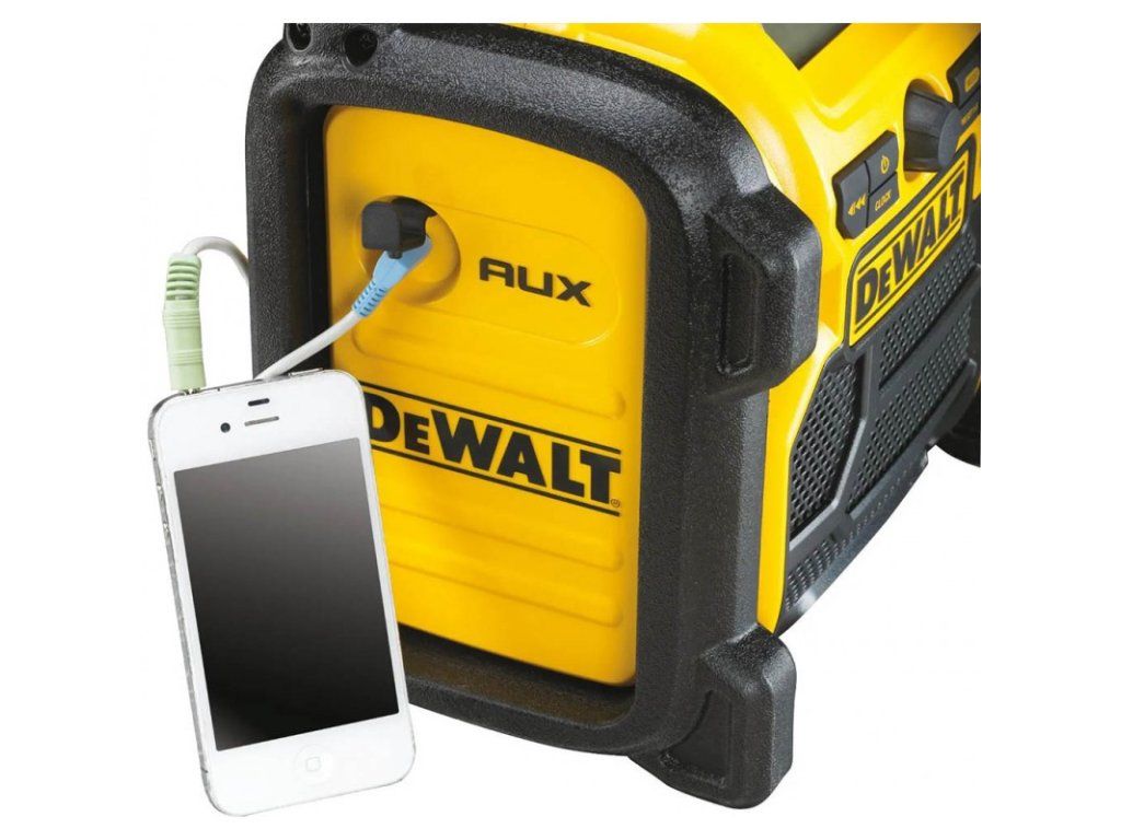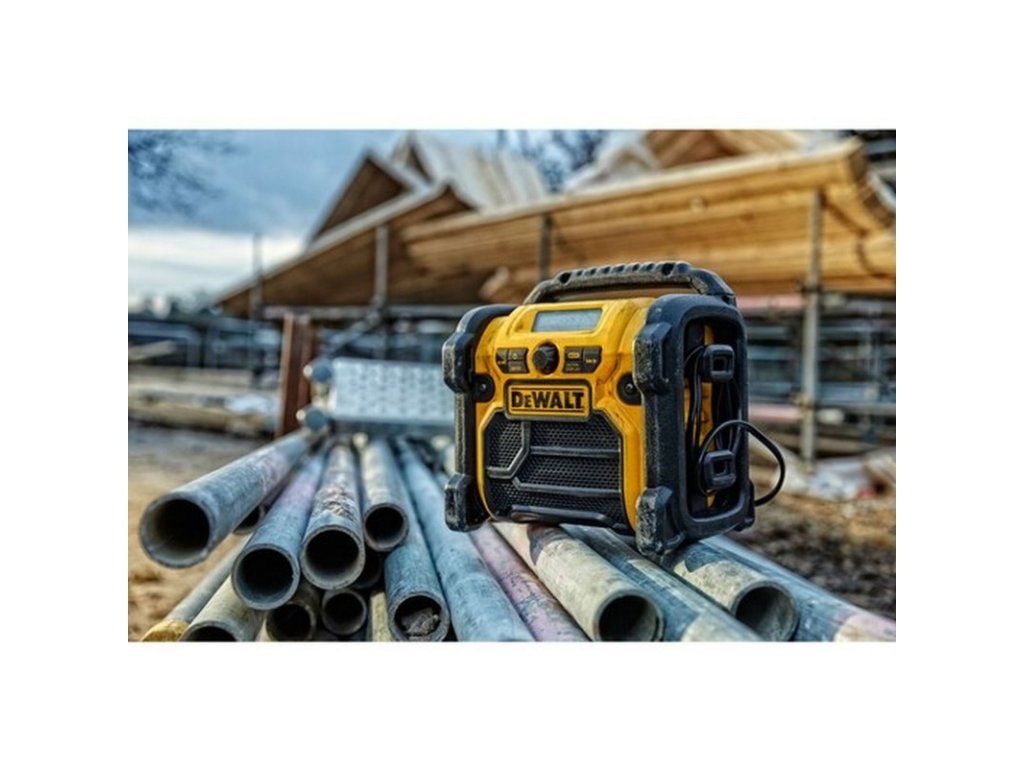 DeWALT DCR020-QW Rádio napájené 220 V nebo XR baterií 10,8 V, 14,4 V a 18 V - bez baterie + USB + AUX vstup / příjem digitálního a analogového signálu